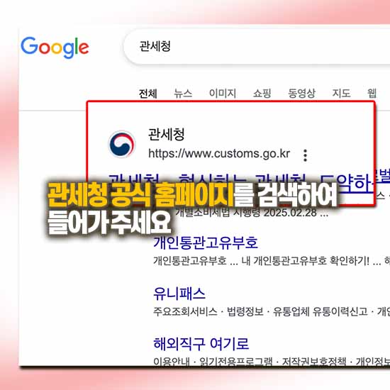 ‘관세청’을 검색한 후 공식 홈페이지에 접속합니다.